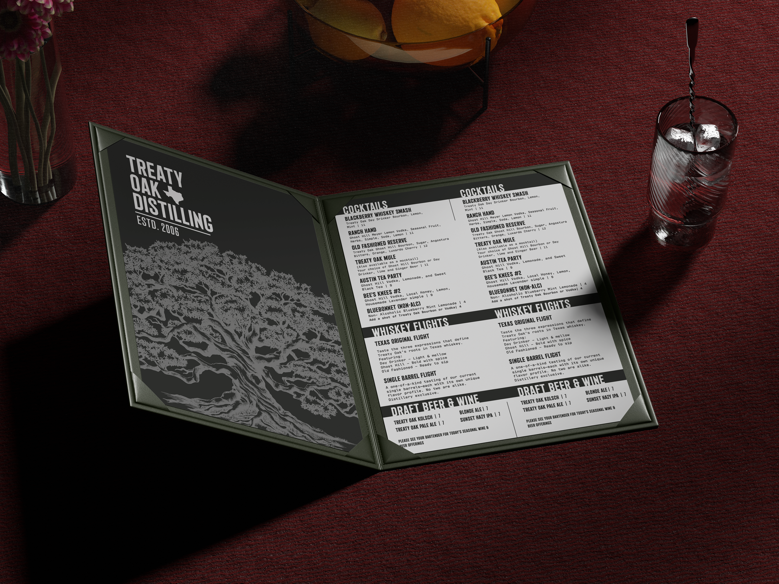 Event, menu, and experiential design for the distillery